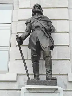 Louis Jolliet, Standbild vor dem Hôtel du Parlement du Québec, Fassade rechter Flügel (Skulptur von Alfred Laliberté).