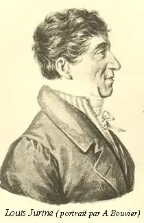 Luis Jurine heiratete am 14. August 1774 Louise Pernette Bonnet (1744–1812).[2] Nach einem Medizinstudium in Paris und Genf erlangte er 1773 seinen Doktorgrad. und wurde im gleichen Jahre in das Genfer Chirurgenkollegium aufgenommen. Er war sowohl als Forscher und Gelehrter aber auch Praktiker tätig. 1797 bis 1798 war er Professor an der Akademie Bern, von 1802 bis 1809 Honorarprofessor für Anatomie und Chirurgie, Professeur Honoraire d'Anatomie et de chirurgie de l'Académie de Genève und von 1809 bis 1819 Professor für Zoologie an der Akademie Genf, Académie de Zoologie de Genève.