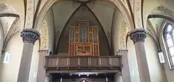 II/P | 13 | Ursprünglich 12 Register, Paul Ott fügte 1956 eine Mixtur III–IV hinzu (seitdem 13 Register), 1993 Restaurierung durch Franz Rietzsch (Hiddestorf), 2021 Neuintonation durch Hans-Ulrich Funk (Herzberg) → Orgel |