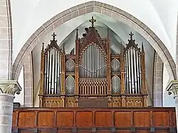 II/P | 34 | 2004 Neubau durch die Werkstatt Orgelbau Krawinkel hinter Krell-Prospekt und unter Einbeziehung einiger vorhandener Register und aus Lagerbeständen von Krell, restliche Register nach Krell rekonstruiert[5] |