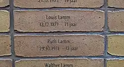 - ↑ Jasper Knegt: 1000ste Stolpersteine gelegd voor boekhandelaar Louis Lamm: ‘Deze man moet herdacht worden’. 17. Dezember 2021, abgerufen am 14. Januar 2022 (niederländisch).