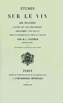 Nicolas Appert hatte bereits 1831 in seinem Buch Le livre de tous les ménages (deutsch: Das Buch aller Haushalte)[67] eine Methode zur Haltbarmachung von Wein durch Erhitzen veröffentlicht, von der Pasteur später erklärte, dass sie ihm unbekannt gewesen sei.[68] Diese Erklärung ist glaubhaft, weil Appert den Abschnitt erst in einer späteren Auflage hinzugefügt hatte.