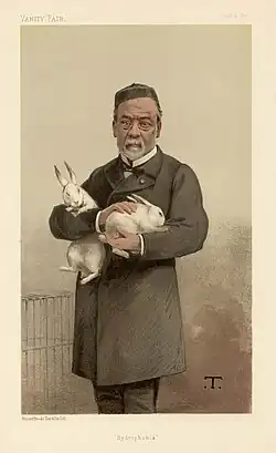 Pasteur entwickelte noch einen Impfstoff gegen eine weitere veterinärmedizinisch bedeutende Krankheit, den Schweinerotlauf.[157] (Der Erreger, der heute Erysipelothrix rhusiopathiae genannt wird, war 1882 von seinem Mitarbeiter Louis Thuillier isoliert worden.) Hierfür setzte er erstmals eine neuartige Methode der Abschwächung ein, indem er den Erreger fortlaufend von Kaninchen zu Kaninchen übertrug. Der Impfstoff gegen Schweinerotlauf war wirtschaftlich – abgesehen von Ungarn – kein großer Erfolg.