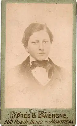 Als Louis Riel 13 Jahre alt war, wurde Alexandre-Antonin Taché, der Suffraganbischof von Saint-Boniface, auf ihn aufmerksam. Taché war bestrebt, talentierte junge Métis zu Priestern auszubilden, da kein Mitglied des ortsansässigen Klerus aus der Region selbst stammte.[7] 1858 ermöglichte er Riel den Besuch des Petit Séminaire am Collège de Montréal, einer vom Sulpizianerorden geführten weiterführenden Schule in der Stadt Montreal. Der Lehrplan war auf Fächer wie alte Sprachen, Philosophie, Literatur und Theologie ausgerichtet, enthielt aber nur wenig Naturwissenschaften; im Wesentlichen entsprach er französischen Lehrplänen des späten 17. Jahrhunderts.[8] Riel wird als guter Schüler beschrieben, jedoch fiel er wiederholt als unvorhersehbar launisch auf.