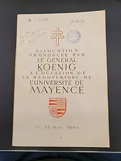 In der Funktion des französischen Stadtkommandanten war er maßgeblich am Wiederaufbau der Johannes Gutenberg-Universität Mainz beteiligt. Dafür wurde er später zum Ehrenbürger der Universität ernannt.[1]
