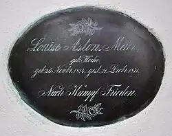 Sie und 1873 auch ihr Mann wurden auf dem Alten Friedhof in Wangen im Allgäu begraben; ihre Grabtafel (an der Nordwand des Alten Gottesackers) ziert der Spruch „Nach Kampf Frieden“.