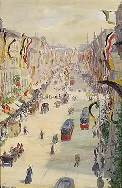 - Mariahilferstraße im Festschmuck, Öl auf Karton, 46 × 31 cm