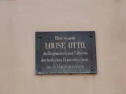 - Gedenktafel für Louise Otto-Peters in der Zentrale der Deutschen Bank in Leipzig, Straße des 18. Oktober