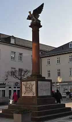Zentrum des Waisenhausplatzes ist das Kriegerdenkmal. Es erinnert an die fünf Homburger Soldaten, die im Deutsch-Französischen Krieg von 1870/1871 gefallen waren. Es wurde von dem Baumeister Christian Holler entworfen und vom Bildhauer Jacob Mey ausgeführt. Die feierliche Enthüllung fand am 10. Mai 1875 statt.
