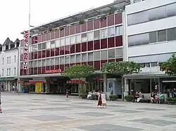 Auf der anderen Straßenseite und durch die moderne Glasfassade stark kontrastierend befindet sich Karstadt. 1966 bis 1968 wurde das Kaufhaus als Hertie erbaut. Das am 1. März 1968 eröffnete Großkaufhaus verfügte über das erste Parkhaus im Obertaunuskreis. Das Kaufhaus spaltete die Meinungen: Während der Neubau als Publikumsmagnet und Beleg der Zentrumsfunktion Bad Homburgs gesehen wurde, wurde (zum Beispiel im Prognos-Gutachten) als „maßstabslose Verbauung“ kritisiert.[16] Ein weiteres großes Einzelhandelsgebäude ist Möbel Meiss an der Ecke zur Ferdinandstraße.
