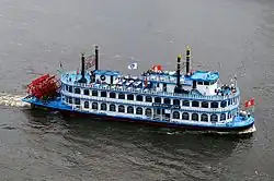 Die Louisiana Star ist neben der etwa gleich großen Mississippi Queen einer von zwei „Schaufelraddampfern“ in Hamburg.