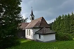 Die kleine Kapelle ist ein Rechtecksbau mit 3/8-Schluss. Sie hat einen kleinen Glockenturm mit Giebelspitzhelm. Die Sakristei ist am Chor angebaut. Der Betraum ist tonnengewölbt und hat Rundbogenfenster. Ein gedrückter Chorbogen trennt den Chor von der restlichen Kirche. Am Chorbogen ist links eine Figur der heiligen Anna und rechts eine Figur des heiligen Wendelins. Im Chor ist eine Lourdesgrotte aufgebaut. Der Stiegenaufgang ist mit Holz überdacht. dort befinden sich auch Votivtafeln.