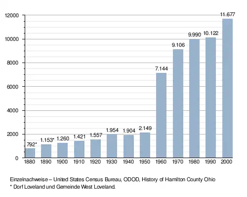 - ↑ Explore Census Data Total Population in Loveland city, Ohio. Abgerufen am 3. April 2023.