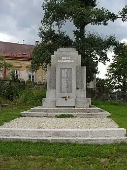Deutsches Kriegerdenkmal mit den Namen der im Ersten Weltkrieg gefallenen Söhne des Orts (Aufnahme 2014)