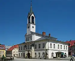 - Das Rathaus wurde 1725 nach Plänen des Architekten Felix Anton Hammerschmidt im Barockstil errichtet. Die Figur des hl. Johann von Nepomuk an der Gebäudeecke stammt aus dem Jahre 1727, der neugotische Turmhelm aus dem Jahre 1864.