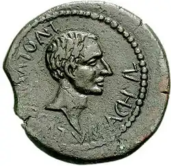 Dupondius mit dem Kopf von Lucius Volusius Saturninus und der Inschrift L VOLVSIVS SATVR ACHVL