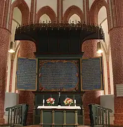 - ↑ Dietrich Diederichs-Gottschalk: Die protestantischen Schriftaltäre des 16. und 17. Jahrhunderts in Nordwestdeutschland: eine kirchen- und kunstgeschichtliche Untersuchung zu einer Sonderform liturgischer Ausstattung in der Epoche der Konfessionalisierung. Schnell & Steiner, Regensburg 2005, ISBN 3-7954-1762-7, S. 40.