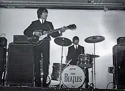 Ringo Starr mit Bassdrum-Fell mit Ludwig-Beschriftung (1964)