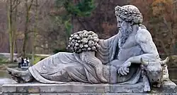 Allegorie des Flusses der westlichen Bug, Statue auf der Terrasse des Palastes der Insel Łazienki Królewskie in Warschau, Statue von Ludwig Kaufmann (pl. Ludwik Kaufmann), 1855