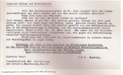 Daneben versorgten Wellhausen, Bruschke und Lehmann Familienangehörige von durch Verfolgung und Verhaftung in Not geratenen Genossen mit Magdeburger SPD-Geldern[32] (kurz vor dem Übergriff der SA auf das Bezirksbüro hatte Bruschke 40.000 Reichsmark gerettet und das Geld in seinem Garten vergraben). Ludwig Wellhausen verhalf überdies im Oktober 1938 dem ehemaligen Leiter des Magdeburger Gesundheitsamtes Dr. Walter Landau, der jüdischer Abstammung war, sowie seiner Familie zur Flucht.[33]