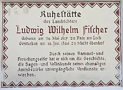 Am 10. Januar 1890 verstarb Ludwig Wilhelm Fischer in Marktoberdorf und wurde dort auf dem alten Friedhof südlich der Kurfürstenkapelle bestattet.