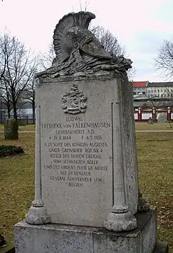 Falkenhausen starb am 4. Mai 1936 in Görlitz. Er ist auf dem Invalidenfriedhof in Berlin begraben. Das Grab ist erhalten.