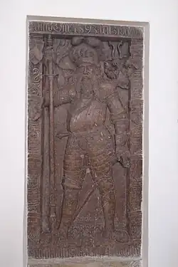 Seine Grabplatte aus Rotmarmor befindet sich in der katholischen Stadtpfarrkirche St. Laurentius in Neustadt an der Donau. Das Renaissancerelief zeigt den ritterlich Gerüsteten in Ganzfigur.