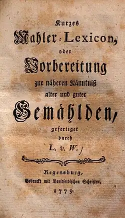 - Kurzes Mahler-Lexicon, oder Vorbereitung zur näheren Känntniß alter und guter Gemählden. Regensburg 1779 (Google Books).