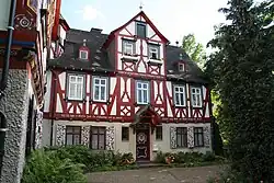 In einer eingefriedeten Gartenfläche stehen zwei versetzt angeordnete Fachwerkgebäude. Der östliche Trakt wurde von 1707 bis 1709 unter der Leitung von Johann Hermann Riedesel (Mannus Riedesel) errichtet, der westliche im Auftrag von Graf Casimir zu Sayn-Wittgenstein-Berleburg für dessen jüngsten Bruder Ludwig Franz zu Sayn-Wittgenstein-Ludwigsburg (* 13. Dezember 1694, † 24. Februar 1750) gebaut. Er ist mit 1724 bezeichnet. Die Anlage diente zeitweise als Sitz einer von Ludwig Franz begründeten gräflichen Nebenlinie. Um 1900 wurden ein Treppenaufgang und Ecktürmchen zwischen beiden Trakten gebaut. Beide Hausteile sind mit Inschriften und aufwändigem Schnitzdekor am Fachwerk geschmückt; am älteren Teil mit den für Riedesel charakteristischen Zierformen.[1]