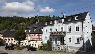 Während des Bauernkrieges 1525 verlor der Ort diese Privilegien jedoch wieder, als die Bevölkerung gegen ihren Herrn, Friedrich von Thüna, aufbegehrte. Erst in den Jahren 1659 und 1717 wurden die Marktrechte teilweise zurückgegeben. In den Jahren 1551–1554 erfolgte der Umbau bzw. Neubau der Burg Lauenstein. Christoph von Thüna ließ den schönsten Teil, den sogenannten „Thünaflügel“, errichten.[7]