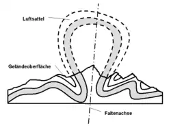 Ursprünglich gab es an dem entsprechenden Ort im Lauf der erdgeschichtlichen Entwicklung einen Sattel, dessen Scheitel und Flanken dann in späterer Zeit durch Erosion teilweise abgetragen wurden. In geologischen Schnitten werden Luftsättel mit gestrichelten Linien dargestellt, die den vorhandenen Faltenrest an den entsprechenden Stellen ergänzen.