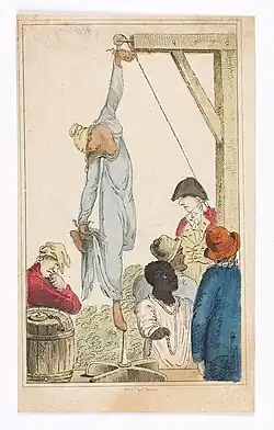 Calderon war nicht geständig. Bégorrat setzte am 22. Dezember 1801 einen Befehl für eine Peinliche Befragung auf, den Picton unterzeichnete. Am Abend des folgenden Tages ließ Bégorrat im Gefängnis an Calderon eine selbst für trinidadische Verhältnisse ungewöhnlich harte Folter namens „Piquet“ vornehmen, die er als Disziplinierungsinstrument in Martinique kennengelernt hatte und die in Europa schon seit Jahrzehnten nicht mehr praktiziert wurde: Calderons linker Fuß wurde an ihr rechtes Handgelenk gebunden. Sie wurde am linken Handgelenk aufgehängt und ruhte mit dem rechten Fuß auf einem abgerundeten, dünnen, in den Boden gerammten Pfahl, auf dem so ihr gesamtes Gewicht ruhte. Der Schmerz im Fuß war beträchtlich und konnte nur durch die ebenfalls schmerzhafte Verlagerung des Gewichts auf das hochgebundene Handgelenk verlagert werden.[7] Neben Bégorrat waren fünf Beamte und Gehilfen, darunter der Gerichtsschreiber, als Zeugen anwesend. Calderon legte ein Teilgeständnis ab, mit dem sie Gonzales belastete, eine eigene Tatbeteiligung aber bestritt. Am nächsten Tag, Heiligabend, folgte eine ähnliche Folter, die ohne Geständnis abgebrochen werden musste, da Calderon mehrfach in Ohnmacht fiel. Folterung war zu diesem Zeitpunkt nach britischem Recht illegal, nach spanischem Recht aber ab 14 Jahren unter bestimmten Umständen erlaubt und auf Trinidad ohnehin gängige Praxis. Unmittelbare Konsequenzen ergaben sich aus dem Geschehen nicht – Calderon verweigerte auch unter der Folter ein verwertbares Geständnis, und als Gouverneur war Picton auf Trinidad selbst kaum Restriktionen unterworfen. Er hatte sich im Laufe der Jahre aber Feinde unter denjenigen Bewohnern britischer Herkunft gemacht, die den vergleichsweise humanistischen, teils jakobinischen Idealen ihres Heimatlandes nachhingen. Diese Opposition verschaffte sich Gehör in London, bis dort im Juli 1802 durch das zuständige Ministerium entschieden wurde, an Stelle des Gouverneurspostens ein dreiköpfiges Kommissariat einzurichten. Als Erster Kommissar und zuständig für die Zivilverwaltung wurde William Fullarton ernannt. Picton sollte Zweiter Kommissar und zuständig für militärische Angelegenheiten an Land sein; Samuel Hood wurde zum Dritten Kommissar und für zuständig für die Marine benannt.[8] Im August 1802 wurde Calderon auf Pictons Anweisung hin nach achtmonatiger Haft freigelassen, wobei sich Picton weiterhin von ihrer Täterschaft überzeugt zeigte; sie habe „durch die lange Haft ihre Schuld verbüßt“.[9] Im Januar 1803 traf Fullarton, ein erklärter Gegner der Sklaverei, in Port of Spain ein und geriet binnen weniger Tage derart mit Picton aneinander, dass eine lebenslange Feindschaft entstand, im Rahmen derer Fullarton den Fall Calderon instrumentalisierte.