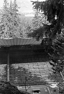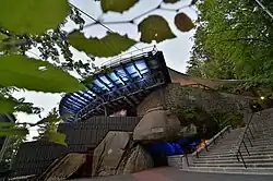 Unmittelbar an die Felsenbühne grenzt das Felsenlabyrinth. Eine Hanglage mit Felsen und Bewuchs bildet auch einen Teil der Kulisse.