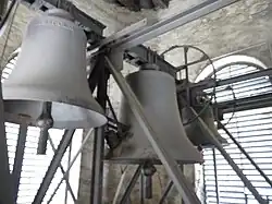 Der Turm verfügt über ein dreistimmiges Geläut im Te-Deum-Motiv, im Einzelnen: