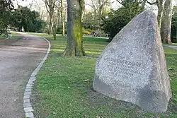 An Carl Wilhelm Casimir Fuchs erinnert ein Gedenkstein, der aus Dankbarkeit aufgestellt wurde, weil Professor Fuchs den Anstoß für die Gestaltung des Parks gab und auch noch einen großen Teil seines Nachlasses für die Finanzierung der Stadt vererbte. Vom alten Planetarium, einem der ersten der Welt, ist nur noch der Hügel erkennbar. Heinz Haber war Initiator für einen Wiederaufbau an dieser Stelle und ließ entsprechende Pläne anfertigen, die sich heute im Mannheimer Architektur- und Bauarchiv des Stadtarchivs Mannheim befinden.[10] Mit seinem Bruder Fritz holte er sich, in der Nähe des Elternhauses, die Inspiration für den Beruf in der Weltraumforschung. 1924 war ein Denkmal für den im Ersten Weltkrieg gefallenen Mannheimer Reichstagsabgeordneten Ludwig Frank errichtet worden, das die Nationalsozialisten entfernten. 1950 wurde eine neue Skulptur, „Jüngling mit Stab“, aufgestellt, die an Ludwig Frank und die Opfer des Ersten Weltkriegs erinnert.