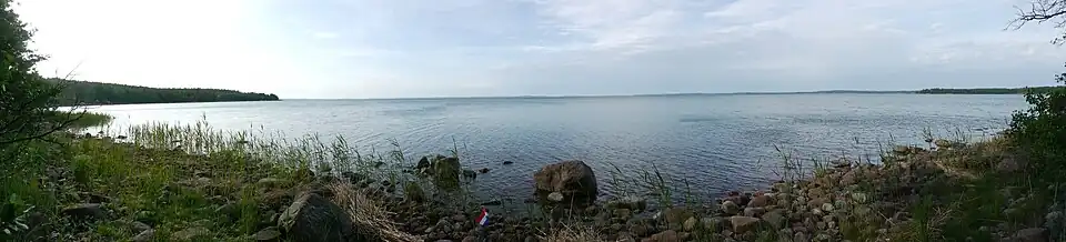 Am Nordufer der Bucht ist ein Teil der Landmasse von den eiszeitlichen Erosionen ausgespart gewesen und Kalkstein aus der Zeit des Ordovizium weist noch außerirdische Ablagerungen auf. Extramaritim ist dies nur bei günstigen Windverhältnissen und entsprechend niedrigem Wasserstand zu sehen. An anderen Stellen entlang des Ufers lassen sich diese Ablagerungen per Bohrung nachweisen. Diese Ablagerungen bestehen aus Quarz, mosaikartig angeordnetem Feldspat und anderen geschmolzenen Fragmenten.[2]