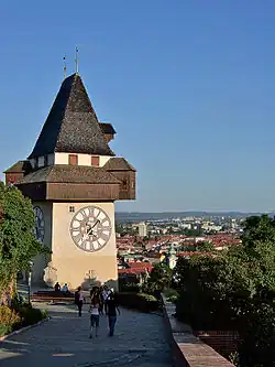 - ↑ Auskunft der Grazer Touristeninformation (per E-Mail) in Zusammenfassung von: Peter Laukhardt: Der Grazer Schloßberg. Weltkulturerbe im Sturm der Zeit. Verlag für Sammler, Graz, 2006, ISBN 3-85365-176-3.