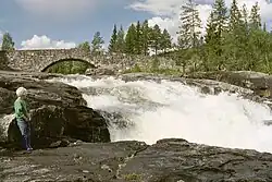Die Brücke führt bei Etnedal in Norwegen über den Fluss Etna und wird nach wie vor vom Autoverkehr genutzt. Die Fahrbahn ist allerdings so schmal, dass sie jeweils in nur einer Richtung befahren werden kann.