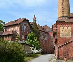 Die Nebengebäude des Klinikums sind schlichte Klinker-Putz-Bauten.[7]