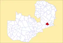 Der Distrikt befindet etwa 330 Kilometer nordöstlich von Lusaka. Er liegt im Süden auf einer Höhe von etwa 900 m und fällt im Norden, im Tal des Luangwa, bis auf etwa 500 m ab. Die Nordgrenze wird vom Lunagwa gebildet. Einen Teil der Ostgrenze bildet dessen Nebenfluss Lusangazi, der auch seine Quellen im Distrikt hat. Ein Stück der Westgrenze bildet der Luangwa-Nebenfluss Msanzala.