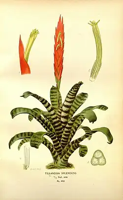 - ↑ a b Werner Rauh: Bromelien - Tillandsien und andere kulturwürdige Bromelien. Verlag Eugen Ulmer, Stuttgart 1990, ISBN 3-8001-6371-3. (als Vriesea spec.)