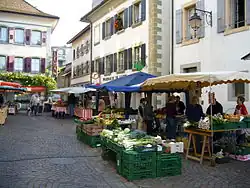 Das Zentrum der Altstadt bildet die Place de la Couronne mit einem Brunnen von 1676. Als weitere Bauwerke sind zu nennen: das Bâtiment des Halles (aus dem 15. Jahrhundert, später mehrmals umgestaltet), die Tour de l’Evêque, die Maison du Simplon aus dem 13. bis 15. Jahrhundert und die gotische Maison des De Prez (14. Jahrhundert).