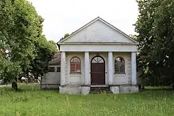 - Die ehemalige evangelische Kirche liegt im westlichen Teil des Ortskerns. Das 1857 erbaute Gotteshaus wurde nach 1945 zu einer römisch-katholischen Kirche und der Mutter Gottes von Tschenstochau geweiht.[1]