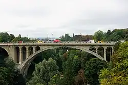 Die Stadt Luxemburg (luxemburgisch Stad Lëtzebuerg, französisch Ville de Luxembourg) ist die Hauptstadt des Großherzogtums Luxemburg. Mit 136.208 Einwohnern (Stand 14. Januar 2025)[2] ist sie die einzige Großstadt des Landes; knapp 20 Prozent der Gesamtbevölkerung Luxemburgs leben in der Hauptstadt. In der Agglomeration Luxemburg wohnen 207.650 Menschen (Stand 1. Januar 2024).[3][4] Luxemburg ist Verwaltungssitz des gleichnamigen Kantons und war es auch für den gleichnamigen Distrikt bis zu seiner Abschaffung am 3. Oktober 2015.[5] Luxemburger nennen ihre Hauptstadt meist nur D’Stad („die Stadt“).