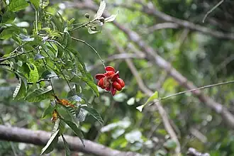 Lychnodiscus reticulatus, Laub und Früchte, Bioko | ||||||||||||