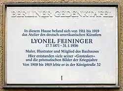 Lyonel Charles Adrian Feininger (* 17. Juli 1871 in New York; † 13. Januar 1956 ebenda) war ein deutsch-amerikanischer Maler, Grafiker und Karikaturist. Ab 1909 war er Mitglied der Berliner Secession. Mit seinen Arbeiten am Bauhaus seit 1919 gehört er zu den bedeutendsten Künstlern der Klassischen Moderne.