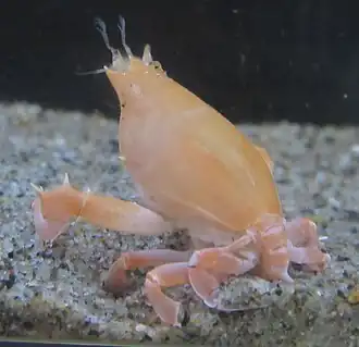 Die Scheren sind gleich groß und meist lang. Das Basis-Ischium des Scherenbeins ist unbeweglich mit dem langen Merus verschmolzen, der Propodus ist kurz und abgeflacht, der untere Rand mit einigen scharfen Dornen besetzt. Der Finger (Dactylus) ist lang, rückenseitig glatt und rechtwinklig zur Vorderseite der Hand gebogen. Die Schreitbeine P2–4 sind schlank, der Merus lang und schlank, Propodus und Dactylus abgeflacht. Das letzte Schreitbein liegt weiter rückenwärts und ist stark reduziert, fadenförmig und in einem kleinen, abgeflachten, elliptischen Dactylus endend.[1]