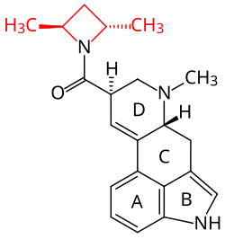 - ↑ a b c David E. Nichols, Stewart Frescas, Danuta Marona-Lewicka, Deborah M. Kurrasch-Orbaugh: Lysergamides of Isomeric 2,4-Dimethylazetidines Map the Binding Orientation of the Diethylamide Moiety in the Potent Hallucinogenic Agent N,N-Diethyllysergamide (LSD). In: Journal of Medicinal Chemistry, 2002, Band 45, Nr. 19, S. 4344–4349, doi:10.1021/jm020153s.