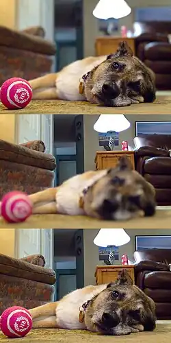 Fokussierung und Einstellung der Schärfentiefe nach der Aufnahme, in der Lytro-Software. Oben: nah, Mitte: weit, Unten: volle Fokustiefe