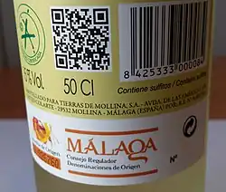 Insgesamt gibt es 16 verschiedene Weintypen zwischen trocken und süß und einem Alkoholgehalt von 15 bis 22 Prozent, darunter Dulce Color, Moscatel, Moscatel natural und Lágrima. Nicht alle Weine werden durch Aufspriten gesüßt, manche werden durch Zusatz von Arrope, eingekochtem Traubenmost, gesüßt. Daneben wird auch noch vereinzelt die ursprüngliche traditionelle Methode angewandt, bei der die Trauben bis zu 20 Tage lang in der Sonne getrocknet werden, um ihren natürlichen Zuckergehalt zu konzentrieren.[3] Der Weinanbau hat in der Provinz Málaga eine lange Tradition; in der Region La Axarquía wird bereits seit der Zeit der Iberer Wein aus in der Sonne getrockneten Trauben gewonnen. Den Höhepunkt seiner Bekanntheit und Produktion erlebte der Málaga im 19. Jahrhundert.[2]